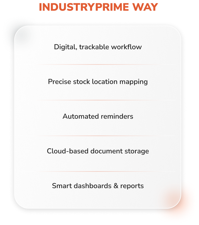 IndustryPrime automates your entire purchase and stores process – from indents, approvals, POs, GRNs, quotation comparison, and stock updates to reports and analytics. It centralizes all your data so every department stays aligned in real time.